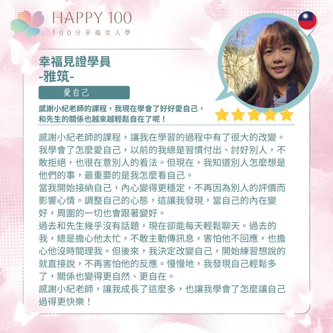 因為妳愛自己,生活才回饋給妳更輕鬆的關係、更溫暖的婚姻。
